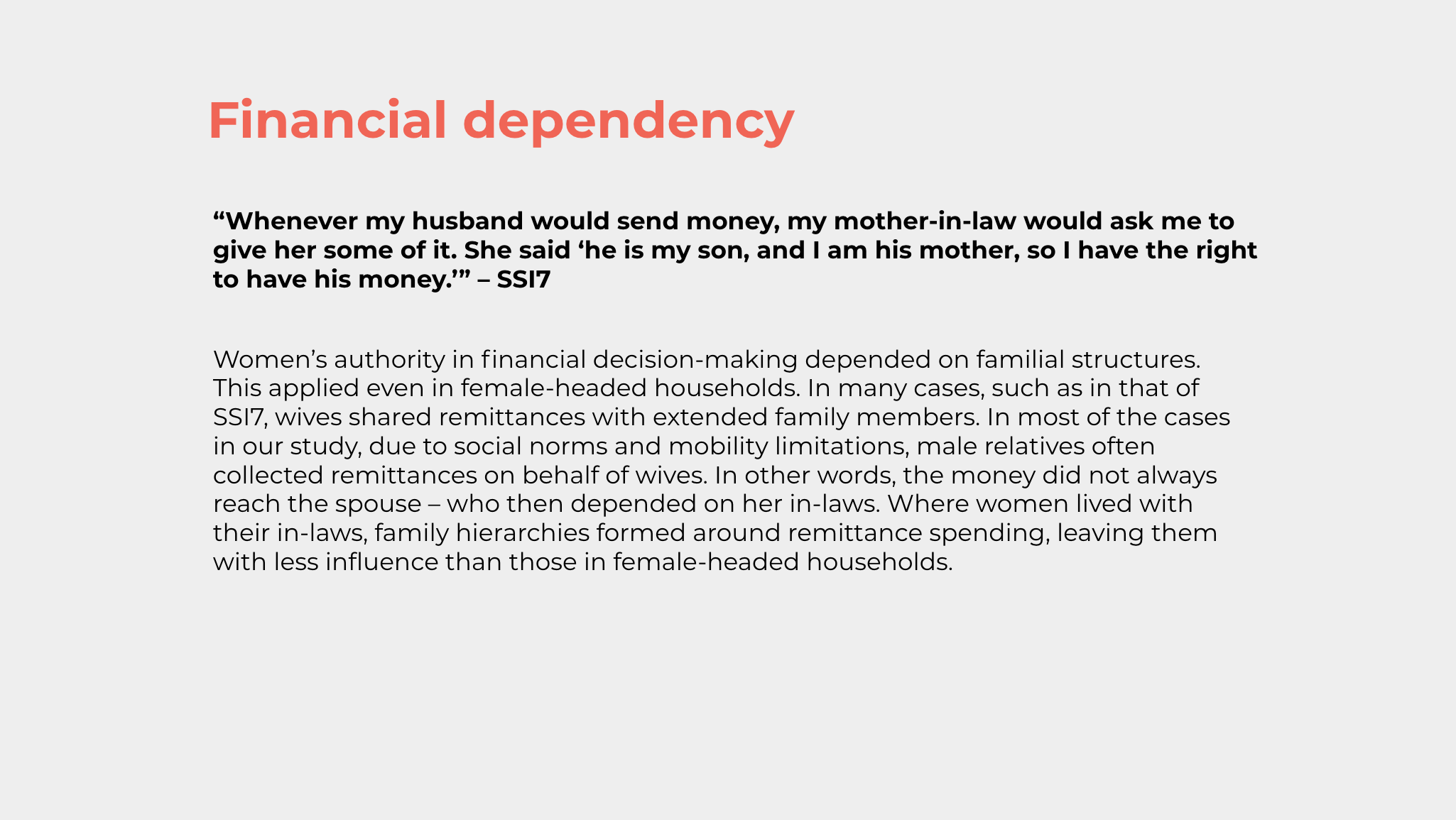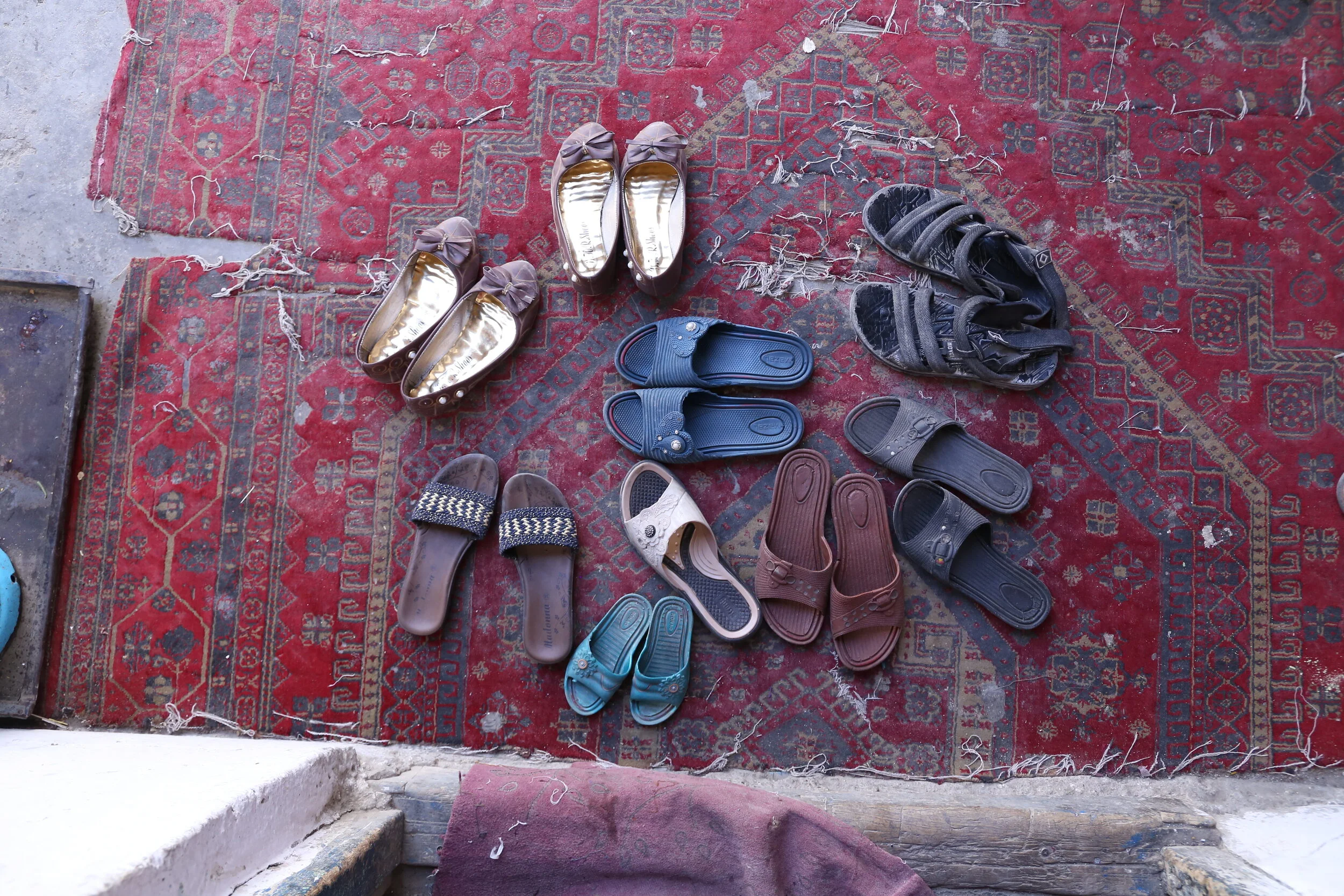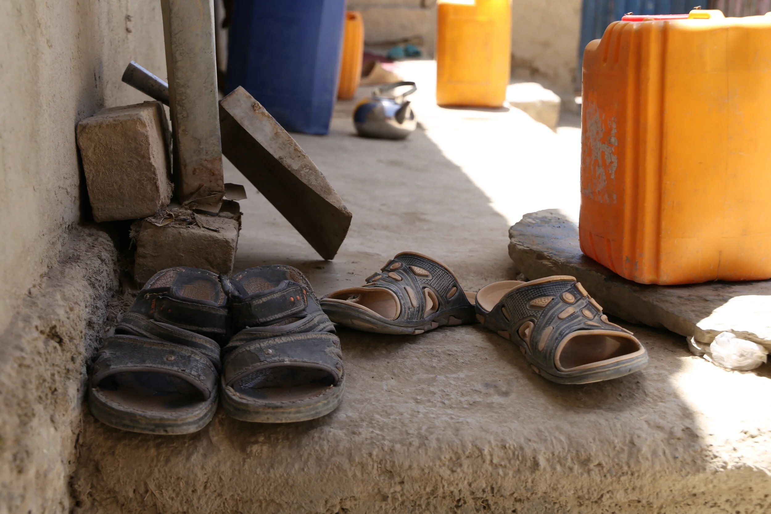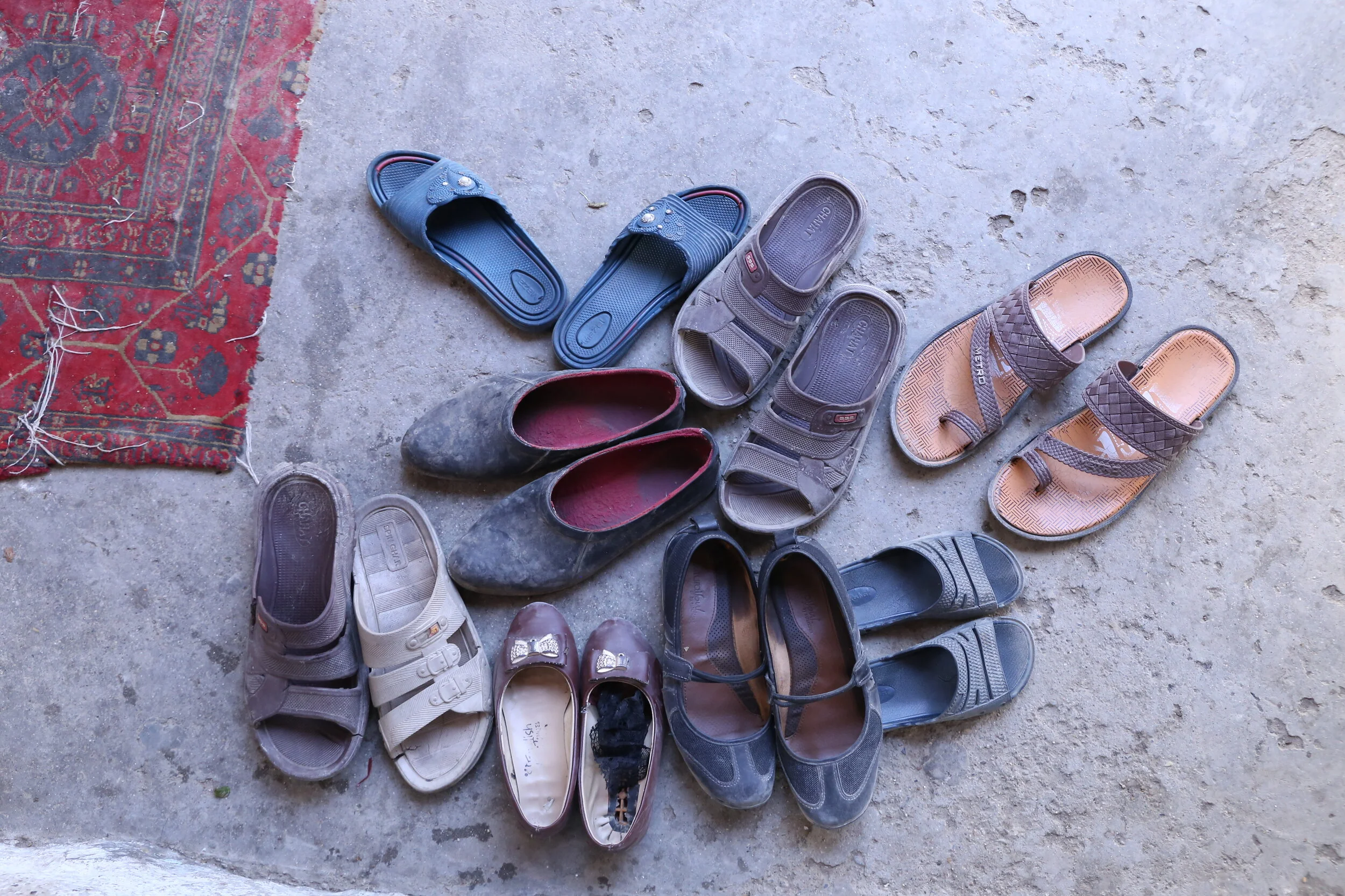 Our research team took photographs of the shoes of each wife who was interviewed to create a visual record of their stories, while protecting each participant’s identity. With shoes often left at the doorsteps of women’s homes, accompanied by those of their children, these photographs record those who are left behind during spousal migration and those who may continue to be overlooked. Amidst the current uncertainty, ensuring these stories are recorded and amplified is more important than ever.